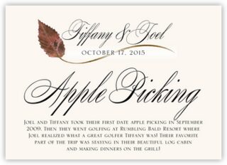 Rather than number your tables at your wedding, use these Ironwood Leaf memorabilia cards to name your tables. These are a unique, and interesting alternative to table numbers. Each card will have a unique name and a description about why your have chose that name.