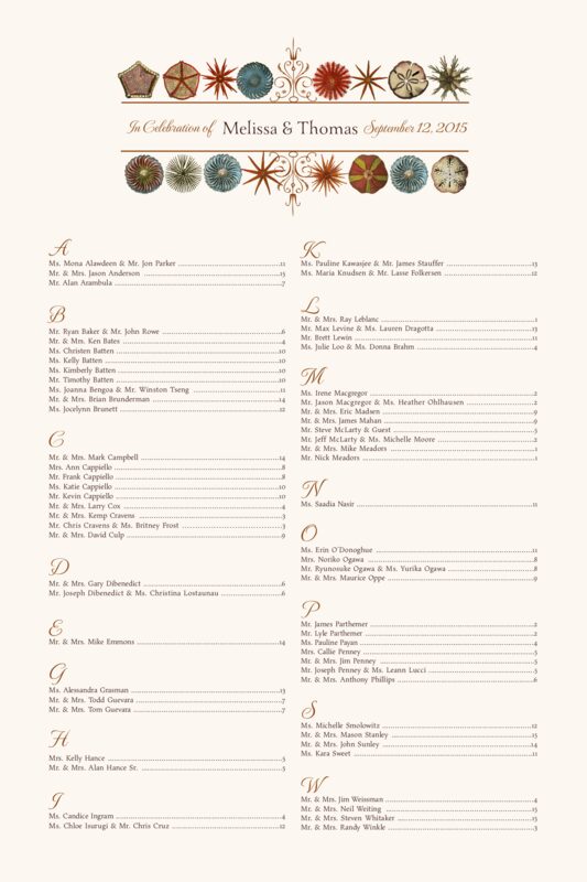 Sea Flowers Seating Charts