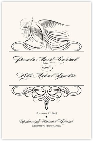 These contemporary programs feature a wispy bird flourish that can be customized in any colors you choose. These would be an excellent choice for any couple looking for a contemporary look to their wedding ceremony