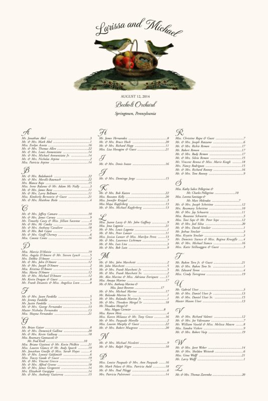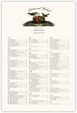 Birdnest in an Apple Basket is a vintage wedding seating chart for country and backyard weddings - part of the Hometown Memories Series of paintings by Documents and Designs