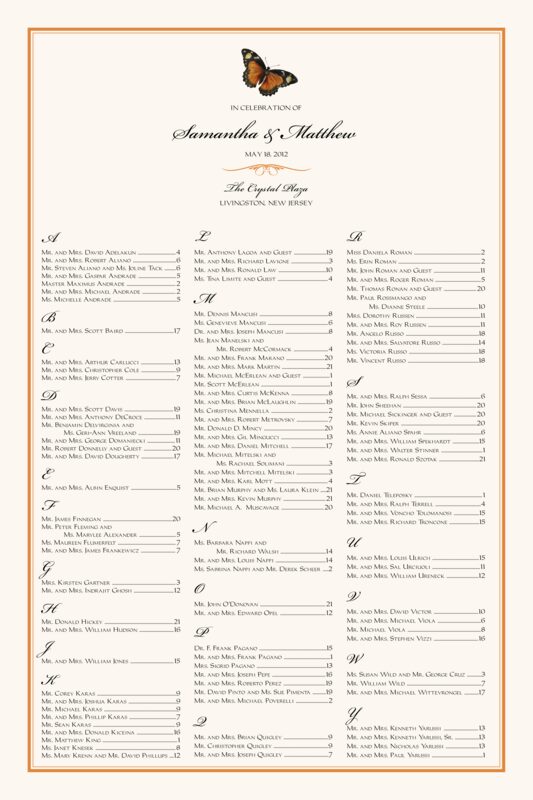 Butterfly Wishes Seating Charts