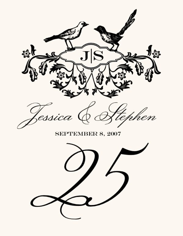 Woodcut Birds Table Numbers