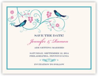 Let your family and friends know that you are getting married with these chic save-the-date cards and wedding announcements. The text is completely customizable, and the birds, branches, and border can be colored to your specifications.
