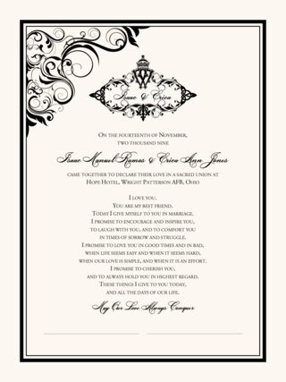 Looking for Wedding Vow or Verse Ideas to use on your Certificate?