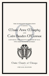 These wedding ceremony programs feature a contemporary Harp and Thistle design and watermarked monogram on the cover, and complimented by Celtic style fonts. The fonts, colors, designs, and border can be customized to match any existing themes or decor.