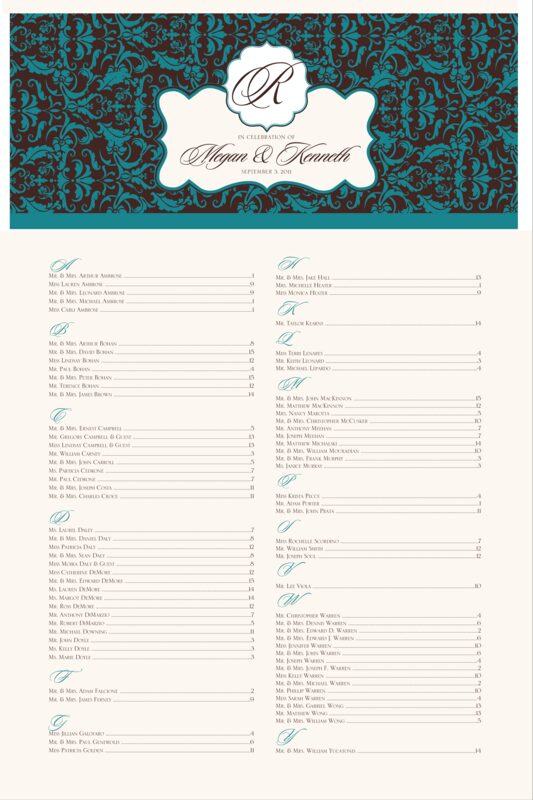 Daily Damask Seating Charts