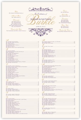 Emerson modern vintage monogram wedding seating scroll is 100% customizable with colors, fonts and border designs. Explore Documents and Designs exclusive collection of modern vintage monogram designs for wedding seating charts and complimentary wedding reception stationery.