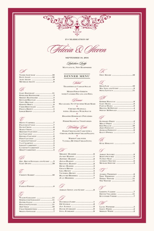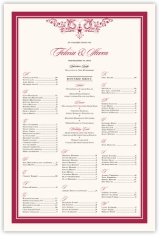 Use our Song vintage wedding seating chart as an alternative or in conjunction with place cards at your wedding. Customize the seating chart with your choice of fonts, colors, or borders, and try to send us your guest list about a week before your wedding reception to finalize the chart.