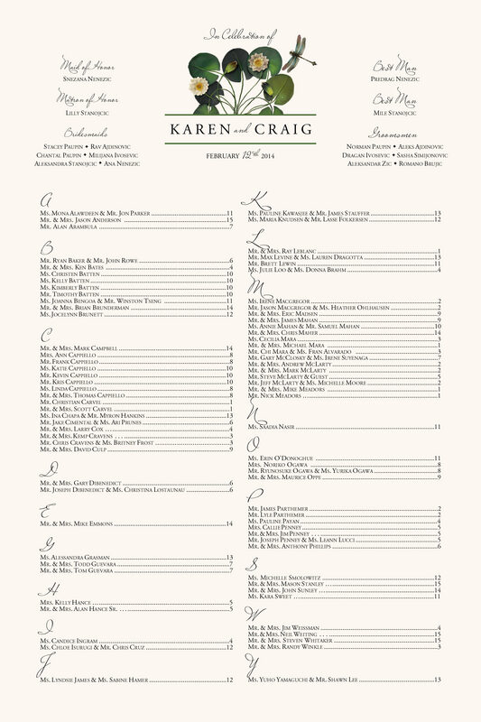 Documents and Designs has many original flower illustrations that can be used on wedding seating charts. Explore our collection of flower graphics for wedding and special event stationery. The Water Lily is another original design offered by Documents and Designs using the water lily flower.