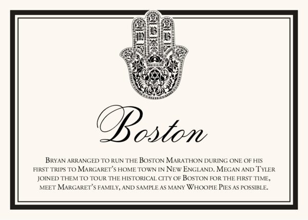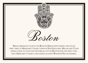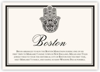 Our Hand of Miriam custom memorabilia cards would make a unique addition to any Jewish wedding. Rather than use table numbers, with these cards you can incorporate a table name as well as a brief paragraph about why that table name is important to you. Referred to as a Hamsa in some cultures, the Hand of Miriam is an ancient symbol used in many cultures thought to bring protections, security, luck, and good fortune.