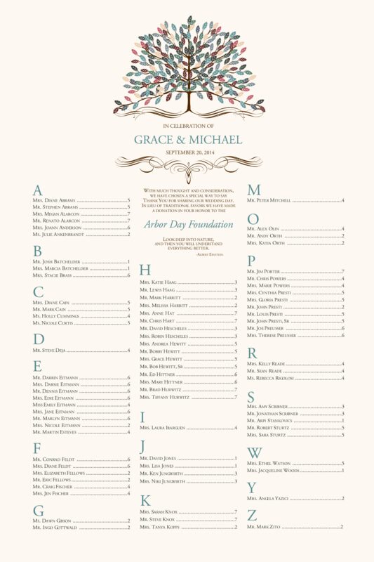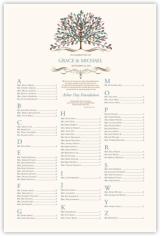 Arbor Day tree of life seating chart with customizable tree graphic.