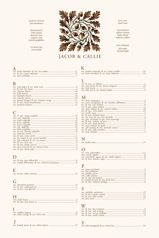 Oak and Acorn Seating Charts