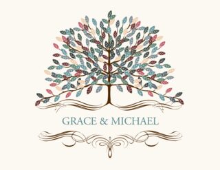 Arbor Day tree of life wedding thank you notes with customizable tree graphic.