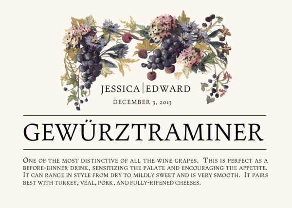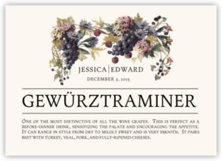 The Blue Grapes Cascade wine trivia wedding table cards will compliment weddings in the wine country or events with a wine or vineyard theme. Explore all of our fruit and grapes illustrations which feature grape graphics and fruit of all kinds. View Wine Trivia Examples