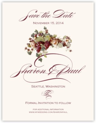 The Peach Roses and Berries wedding table cards will compliment weddings in the wine country or events with a wine or vineyard theme. Explore all of our fruit and grapes illustrations which feature grape graphics and fruit of all kinds. View Wine Trivia Examples