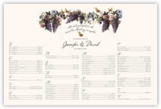 Our Blue Grapes and Butterflies Seating Chart is an excellent addition to any wine lover, or event held at a vineyard. Let us customize these seating charts with your choice of fonts, colors, or monograms.