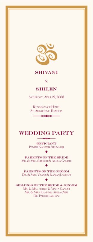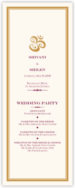 The Ganesha Gold Hindu Wedding Ceremony Program Booklet contains information about the Hindu wedding ceremony and offers a simple understanding of traditional rituals with the your wedding guests. View additional Hindu Wedding Program choices. View additional Indian Monogram choices.