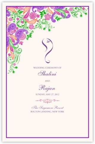Paisley Garden Indian Wedding Program Booklet with Hindu Wedding Ceremony Rituals.