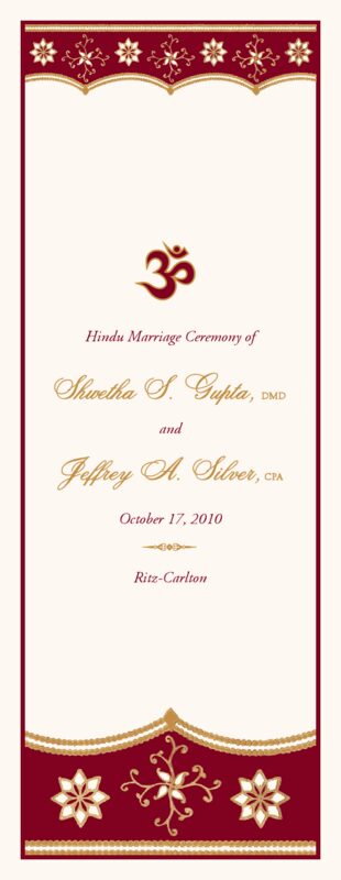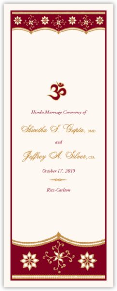 Saari Pattern Indian wedding program book with Hindu traditions.