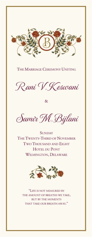 View additional Hindu Wedding Program choices. View additional Indian Monogram choices.