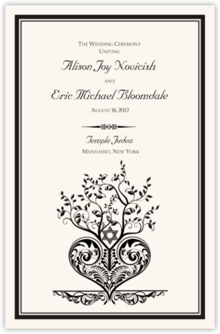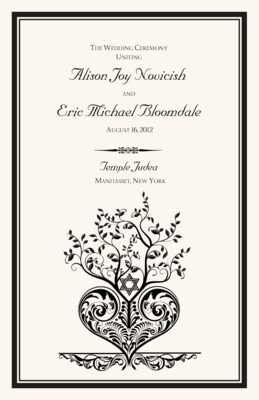 Explore Jewish wedding program wording samples and additional Jewish wedding program design ideas.