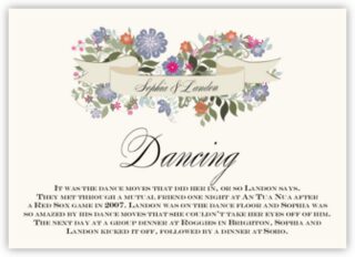 We can customize each of these wedding memorabilia cards with your choice of table names, paragraphs, fonts, colors, or monograms, and offer a complete set of matching Garden Flurry accessories.