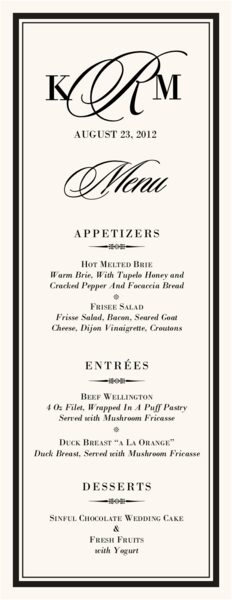 Sloop Monogram Wedding Menus