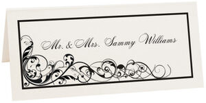 Add a touch of elegance to your wedding reception with these contemporary place cards. Seating assignments may be printed on either the inside or outside of each place card, and optionally add a meal choice to each card.