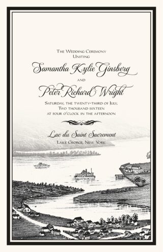 Our Lake Front wedding program is perfect for your lakeside wedding or your ceremony on a ship. The program features a classic print of an etching from a picturesque lake with a . You're more than welcome to have us customize the program cover with your own picture or choice of fonts, colors, and borders.