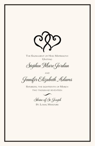 Our Linked Hearts wedding programs are a unique and romantic way to walk your guests through your marriage ceremony. Order just the program covers, or send us the information for the interior and let us know design it for you. Generally speaking, you will list the wedding party and the order of service on your program, as well as a thank you note. But you can include any information that you would like!