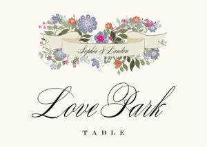 We can customize each of these wedding table name cards with your choice of table names, fonts, colors, or monograms, and offer a complete set of matching Garden Flurry accessories.