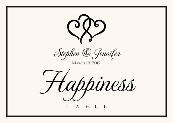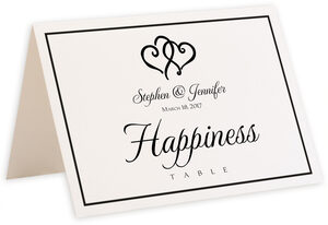 Instead of using table numbers at your wedding reception, these table names will add a little interest and variety to your tables. Each table card can be customized with your choice of table names, as well as your choice of heart illustration, borders, fonts, or colors.
