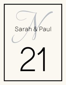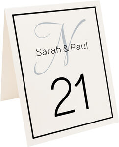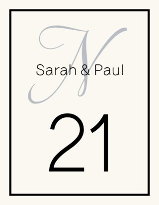 Adios script monogram table number with watermark initial and brownstone font. Explore additional Adios Script Monogram choices.