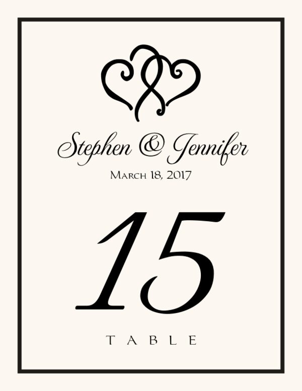 Our Linked Hearts table numbers are a romantic and unique addition to your table numbers at your wedding reception. Customize the table numbers with your choice of heart illustration, fonts, borders, or colors.