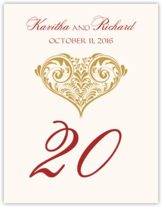 Paisley Heart Table Numbers