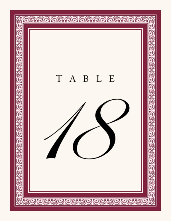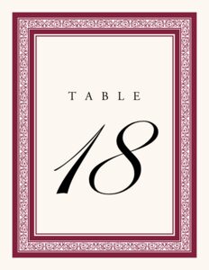 Dress up your wedding with this simple, but classic and elegant table number. Let us customize the border of font style with any colors of your choosing.