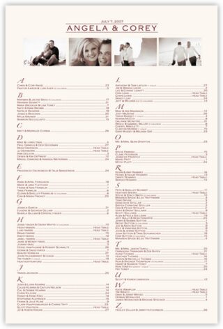 Plan your wedding seating arrangements with this elegant photo seating chart. You may include as many or as few photographs as you would like at the top of the scroll, and we have no problem editing, cropping, or turning your pictures black and white or sepia toned. You may further customize the look by adding a border, or changing the fonts, colors, or monograms.