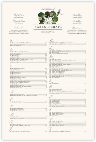 Documents and Designs has many original flower illustrations that can be used on wedding seating charts. Explore our collection of flower graphics for wedding and special event stationery. The Water Lily is another original design offered by Documents and Designs using the water lily flower.