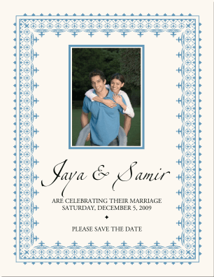 Save the Date Stationery with India Inspired Border & Engagement Photograph