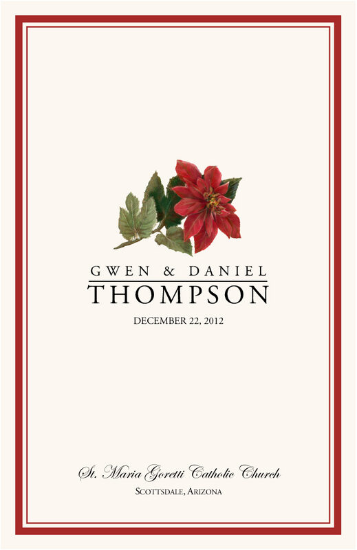 Walk your guests through your wedding ceremony with our Poinsettia Wedding Programs. They are perfect for your winter, Christmas, or holiday wedding. Each program is custom-made to your specifications, and you can include any information you'd like on it. Think about customizing it with a different border, fonts, or colors, or feel free to add a snowflake or two from our winter snowflake collections.
