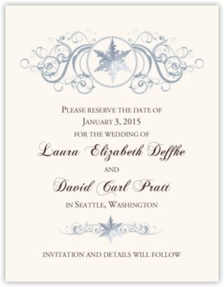 The Curly Sue Snowflake save the date cards feature the Curly Sue Vinatage Monogram with a holiday touch. Customize these save the dates by changing the font, flourishes or colors to match your current wedding theme.