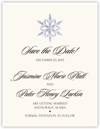 Invite your guests to your winter wedding with these snowflake save-the-date cards. Each wedding announcement is 100% customizable, with your choice of illustrations, fonts, colors, or borders. All save-the-dates include a matching envelope.