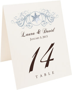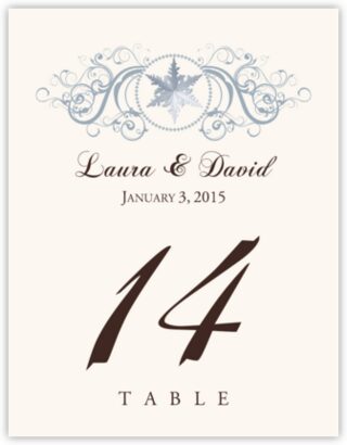 The Curly Sue Snowflake table number cards feature the Curly Sue Vinatage Monogram with a holiday touch. Customize these table numbers by changing the fonts, flourishes, or colors to match your current wedding theme.